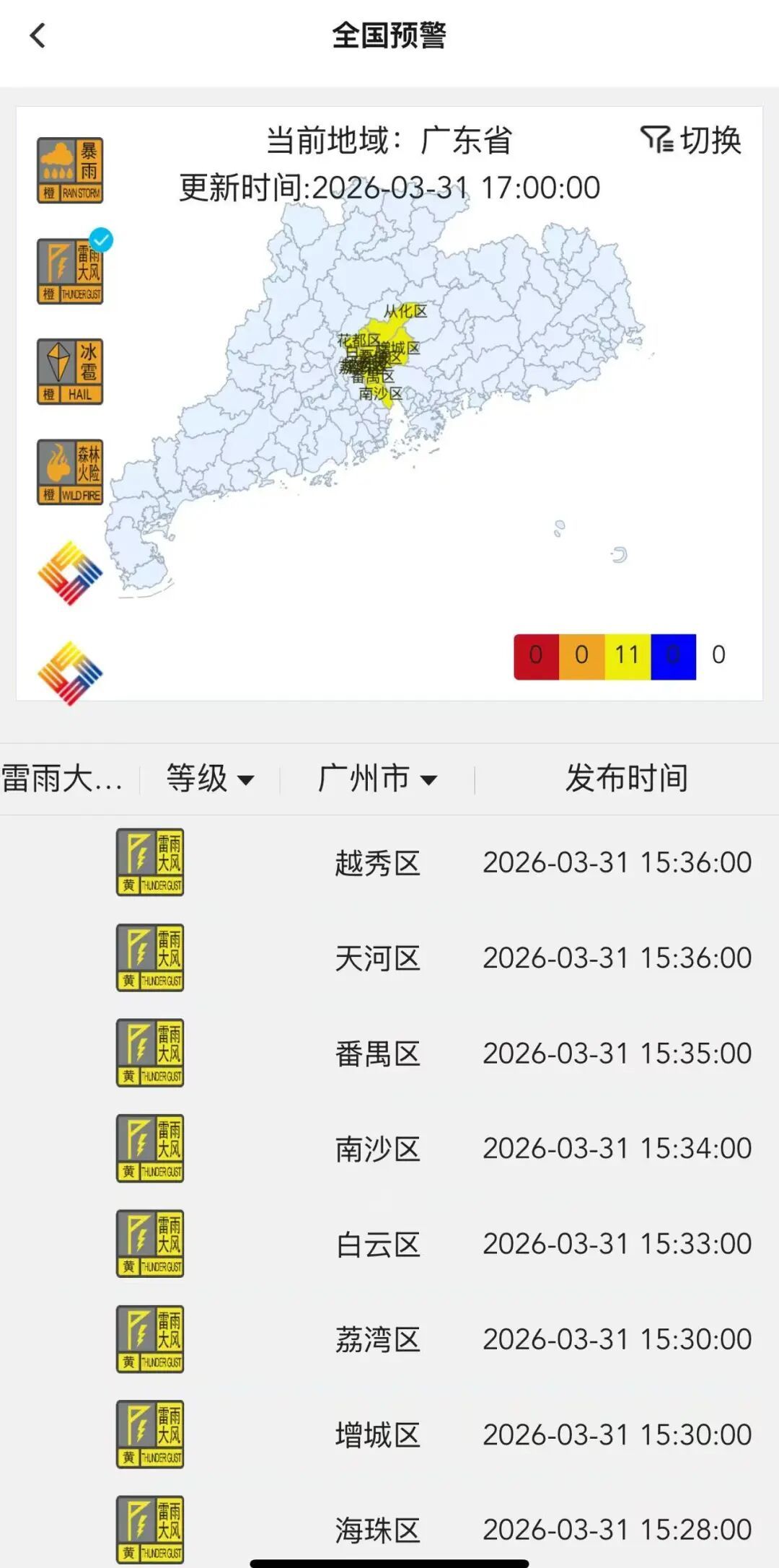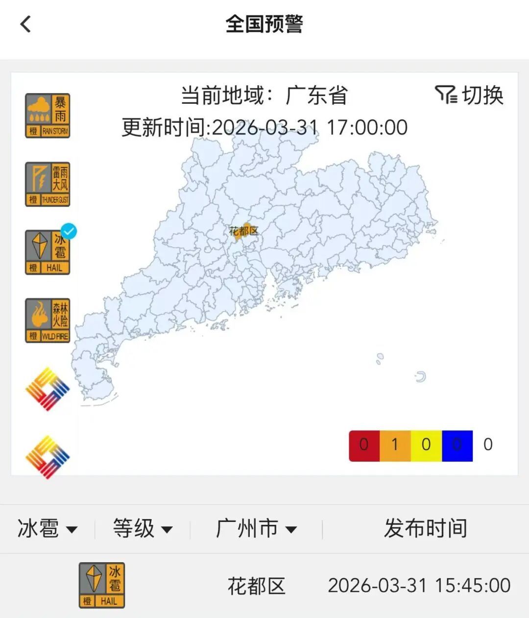 花都区的冰雹橙色预警